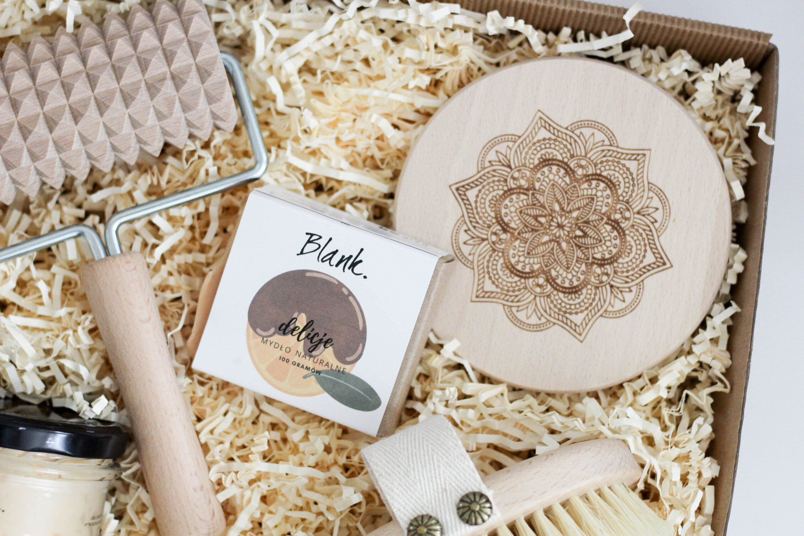 - drewniana podkładka pod kubek lub świecę z wygrawerowanym wzorem Mandali